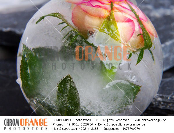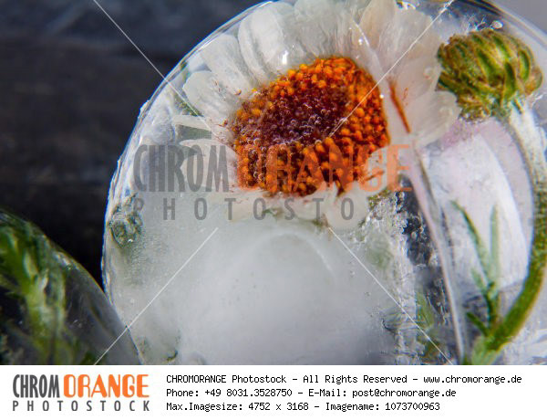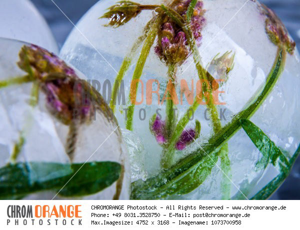 Blüten in kristallklarem Eis